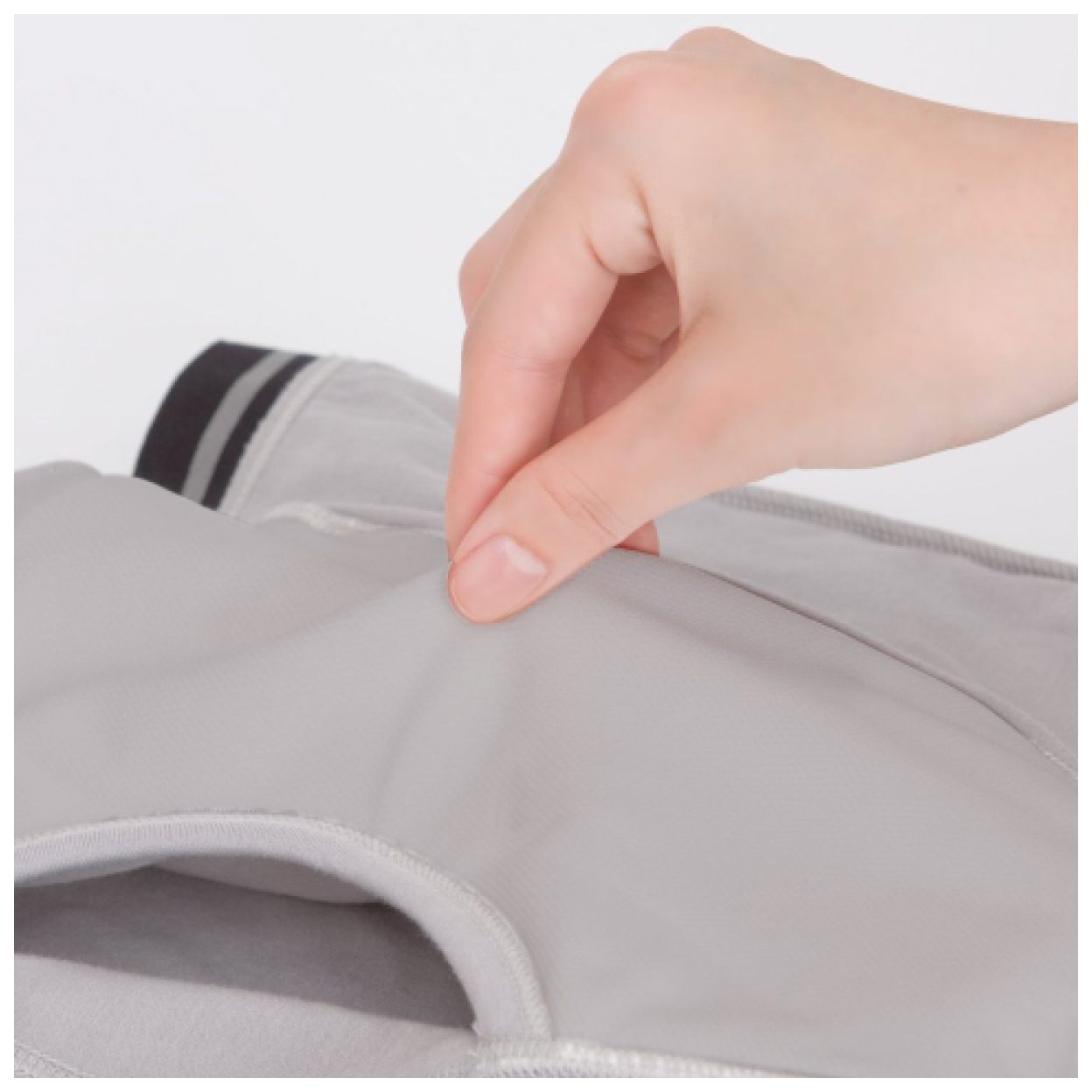 羽根付きパッドで太ももへの伝い漏れをしっかり吸水。ボリュームを抑えたパッドで、もたつきやごろつき感も軽減し、普通のパンツと変わらない着用感です。
